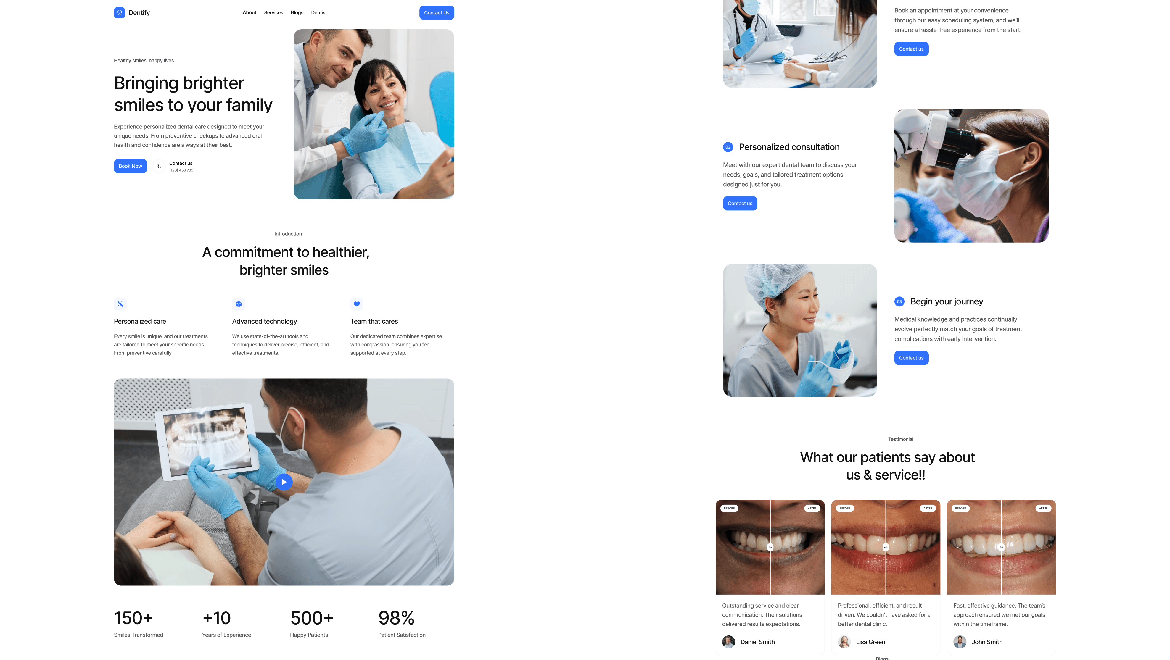 Clinic Philosophy: Details the mission, values, and the story behind Dentify Clinic. This page is designed to connect with patients on a personal level, emphasizing the commitment to personalized and compassionate care.
