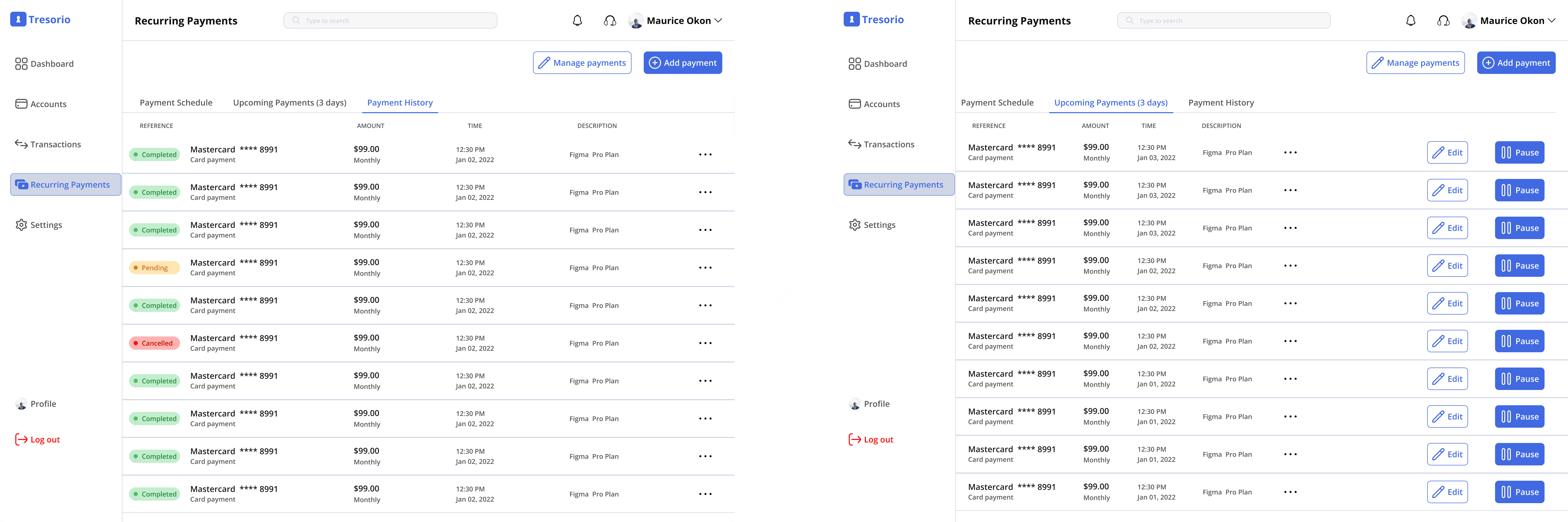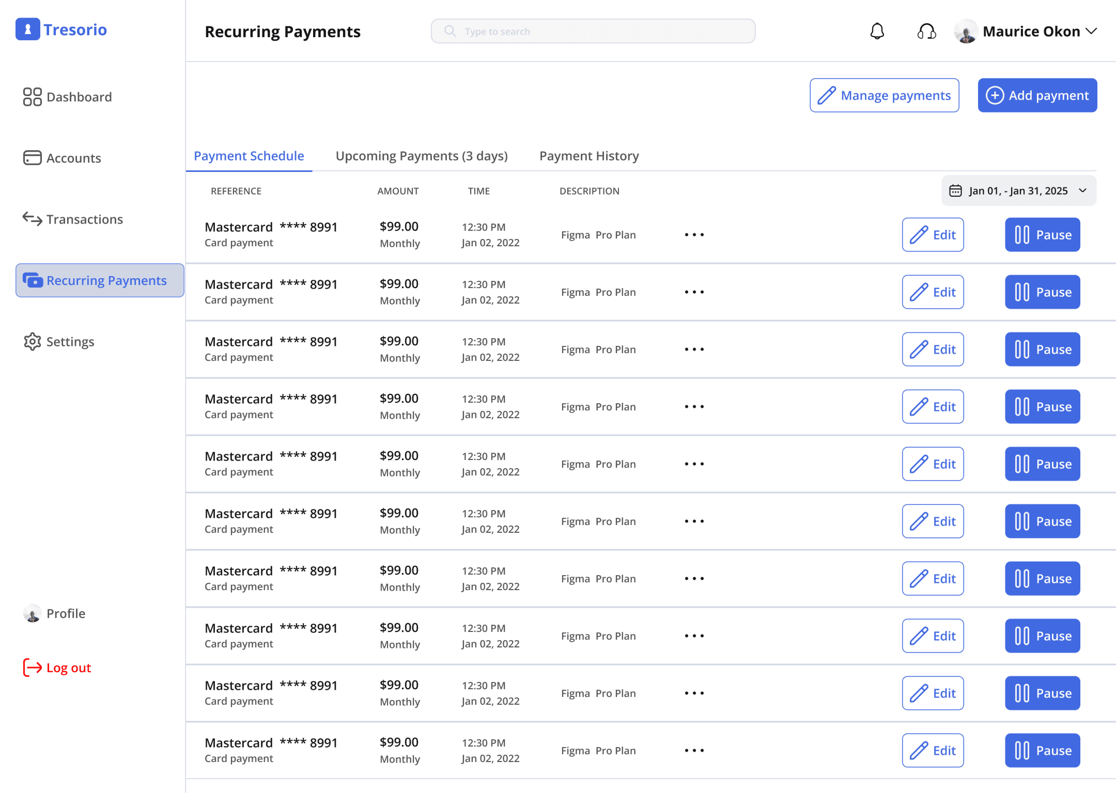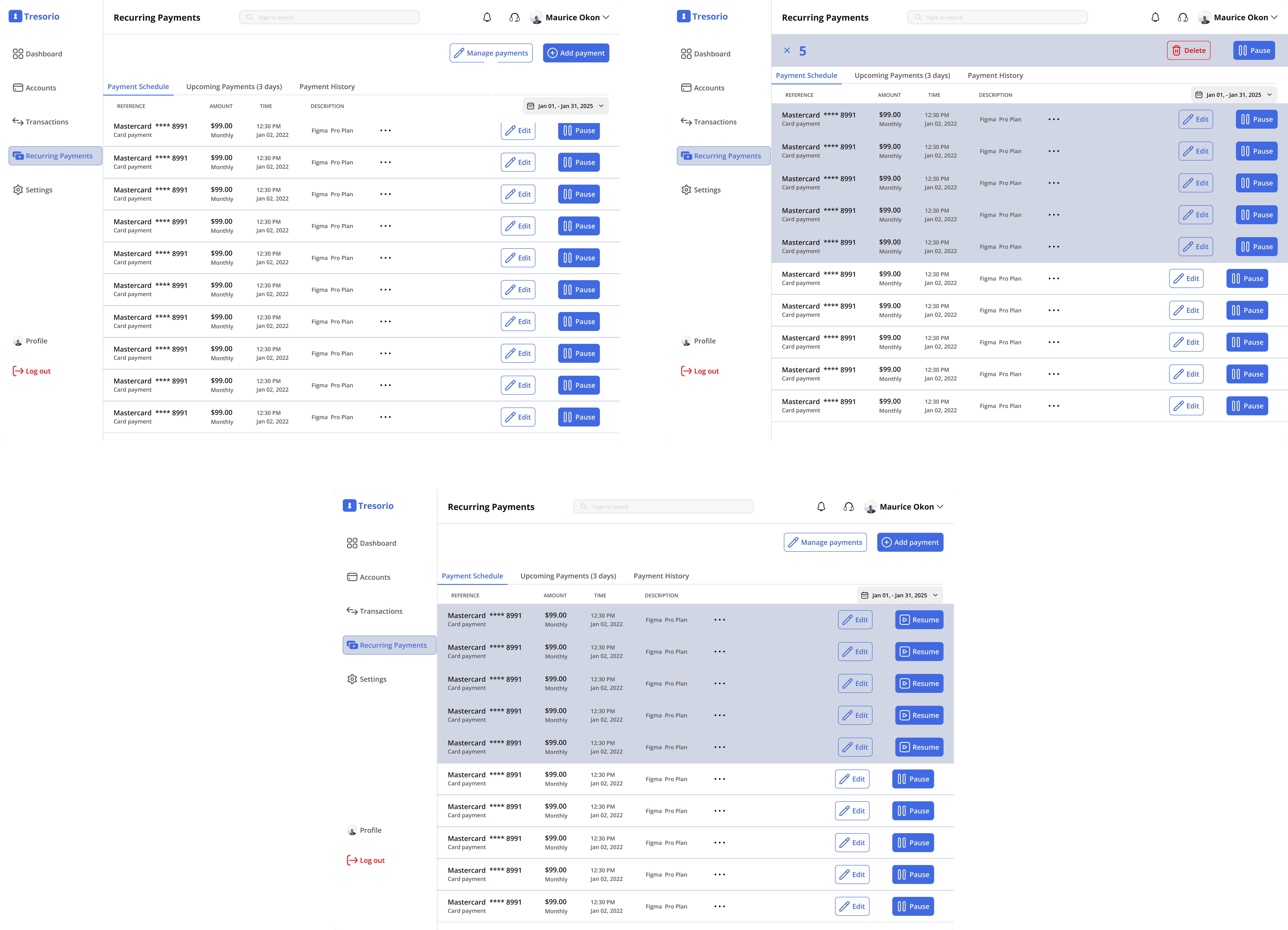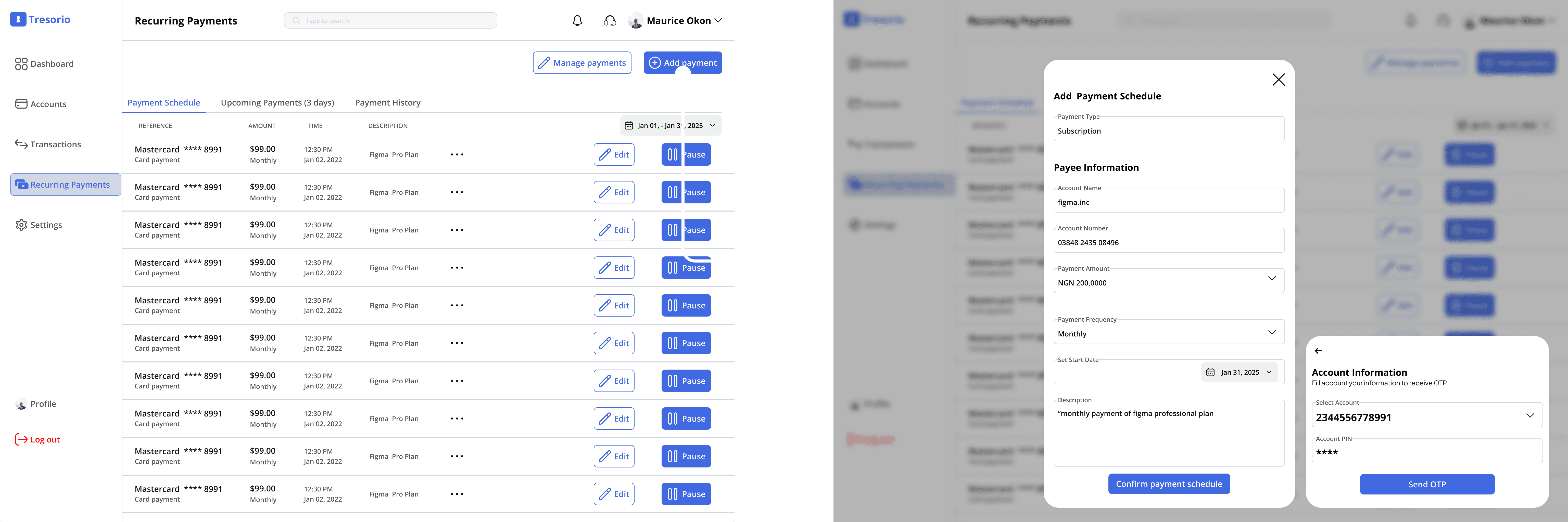Improving Recurring Payments and Subscriptions in Tresorio Bank Web App