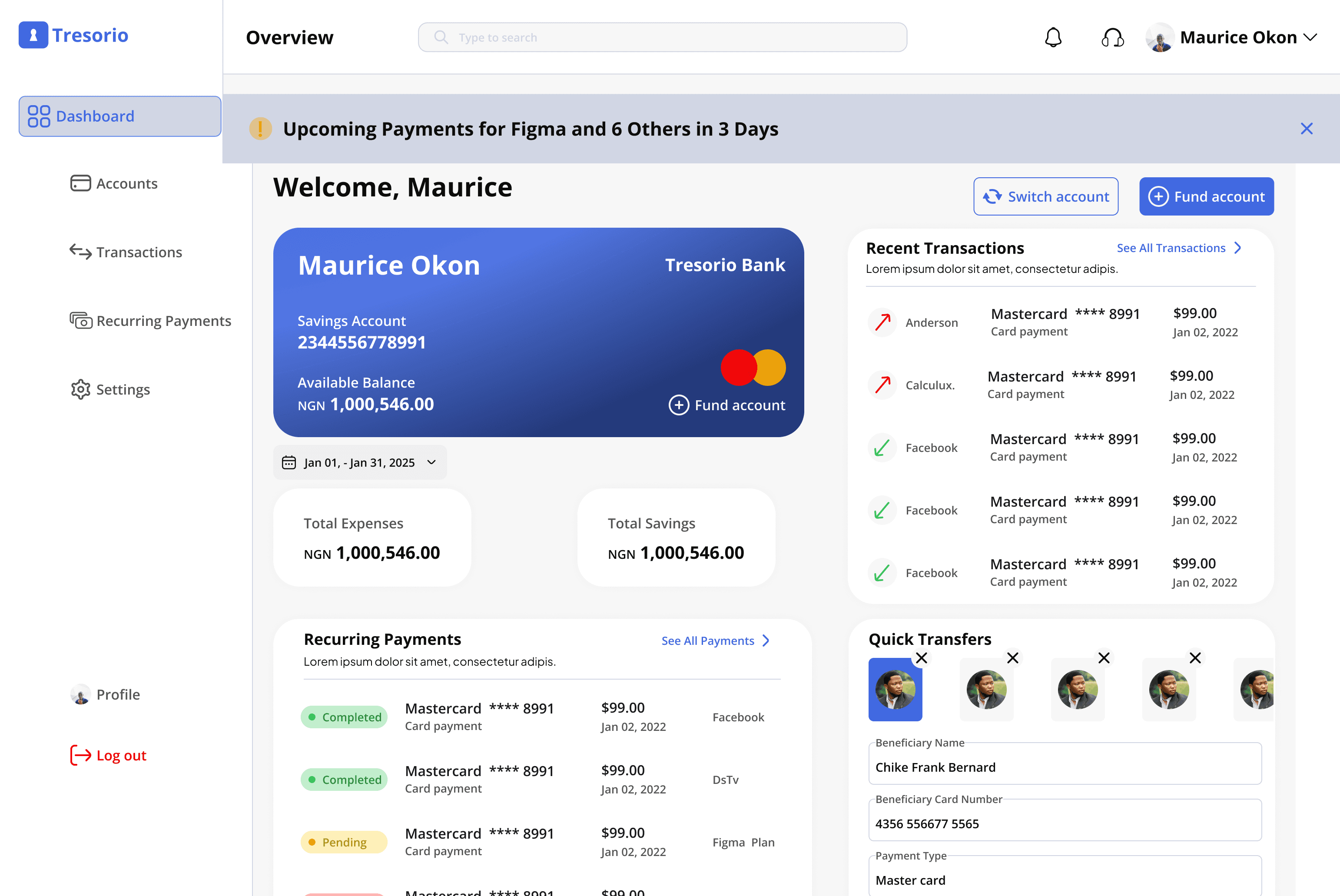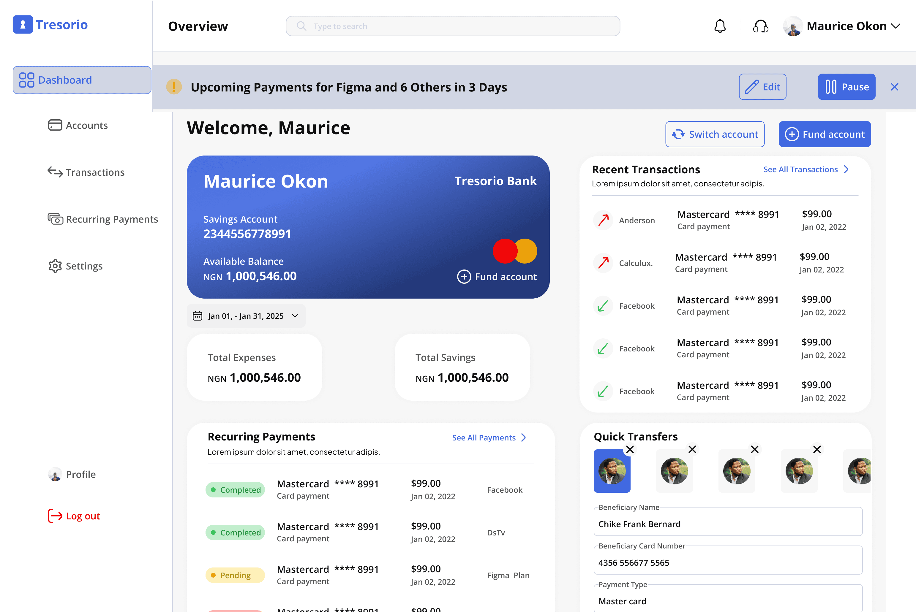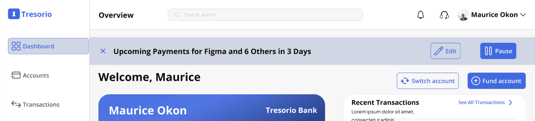 My journey with the Tresorio Bank web app began after I encountered numerous feedback about users struggling to manage their recurring payments and subscriptions effectively. Many expressed frustration with the lack of clarity and control over their scheduled transactions.