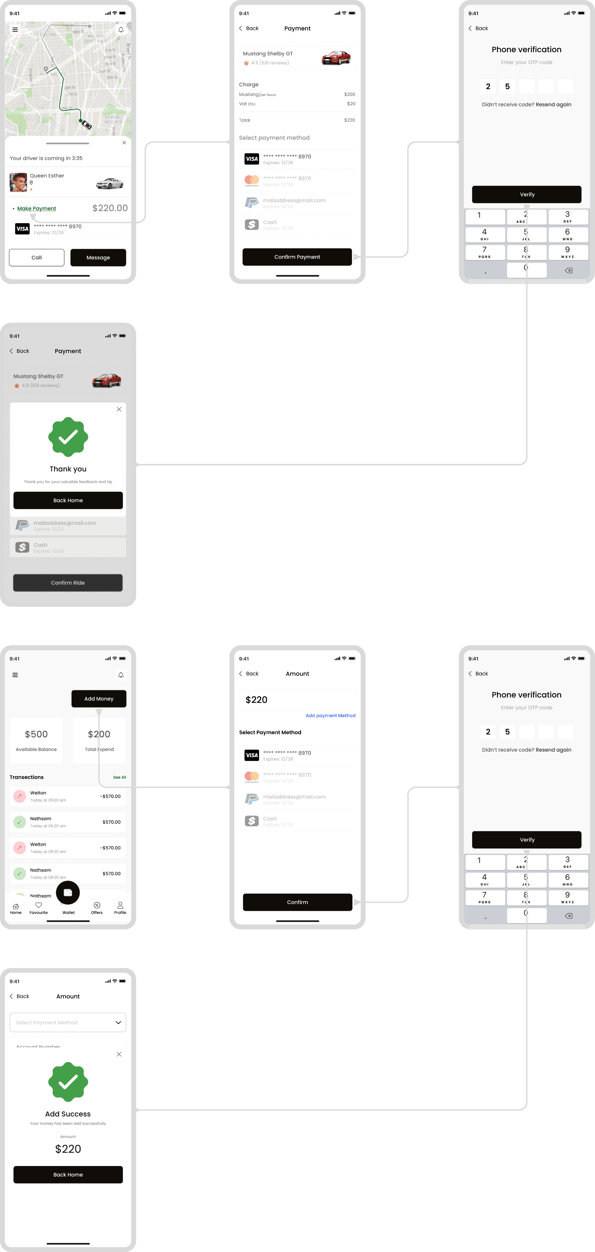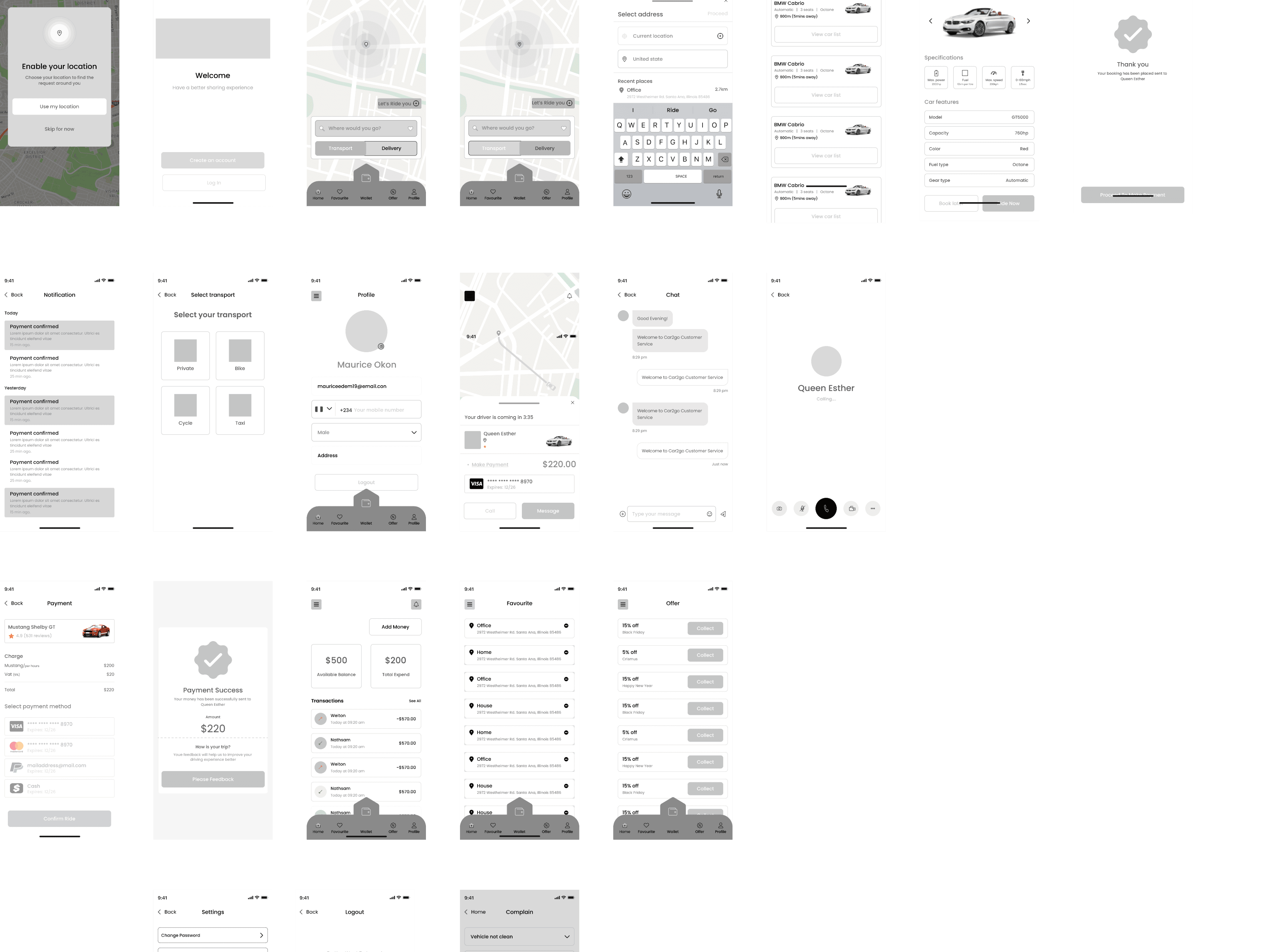 I created detailed wireframes to map out the user journey, from booking a ride to payment and driver rating. With the help of user feedback, I refined these designs into low and high-fidelity prototypes. Each iteration brought us closer to a user-centric product that aligned with our goals.
