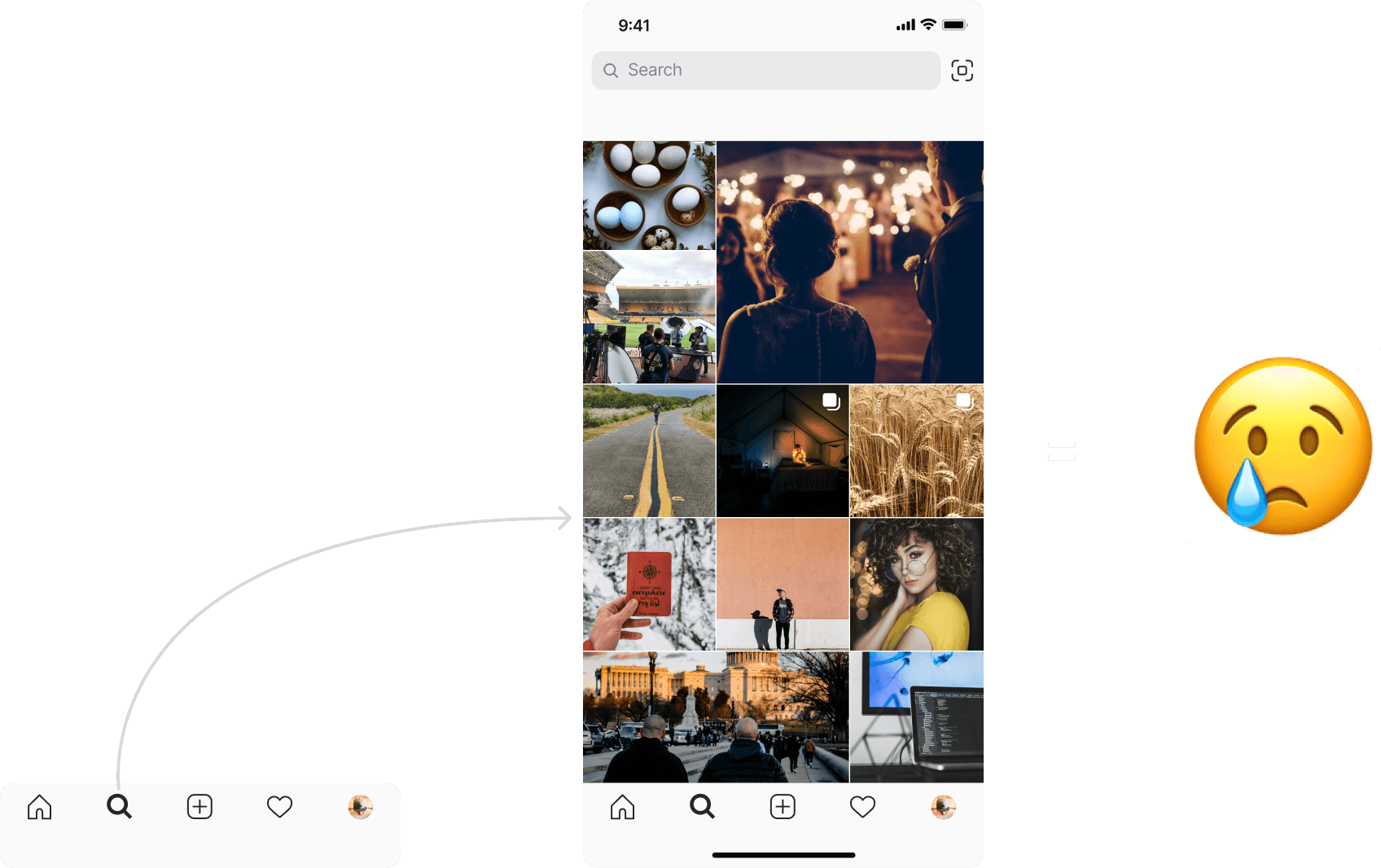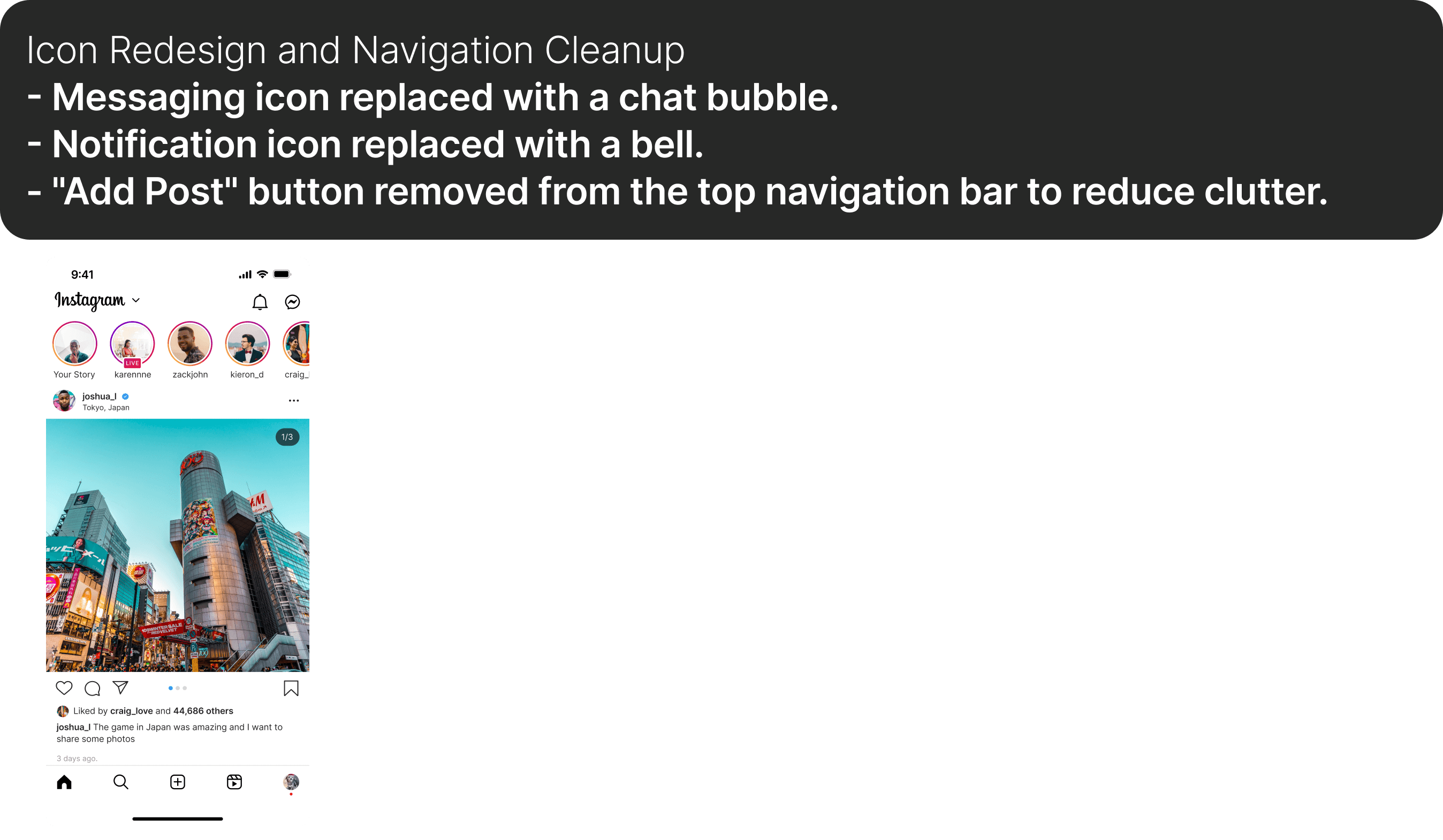 Instagram has evolved significantly, but certain UX patterns were causing friction for users. Navigation was cluttered, and key features lacked intuitive visual cues.
